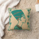 Adorn your home with a piece of royal history. This stunning throw pillow features the majestic Queen Nefertiti, celebrated for her beauty and powerful influence in ancient Egypt. Her iconic bust is rendered in a minimalist, modern style, blending historical accuracy with contemporary design. The cool tones of teal and green stand out against the warm cream background, creating a serene and elegant feel.