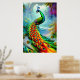 Stunning peacock with magnificent tail feathers - original from Ricaso. Peacock bird in red, green, orange and purple colors wall art / poster / print