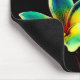 Stunning watercolor-themed digital art design of two plumeria flowers. The background is a solid black, and the flowers have shades of blue and yellow. The stylish yellow text says, "LOVE". You can easily customise and change the wording if you wish. This eye-catching design on a mousepad is sure to attract some attention in your home or corporate office.