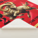 Elevate your 2027 lunar new year entertainment experiences with this celebratory fleece blanket, which features the Fire Goat dancing on a luxurious faux red silk background bordered by faux gold foil, plus the Chinese letterform for the Goat/Sheep/Ram rendered in faux gold foil, standing in place of the zero in 2027.