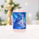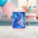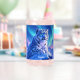 Add a supernatural touch to your favourite drink with this can glass, which features a majestic snow leopard with piercing blue eyes, its fur adorned with intricate patterns of frost and ice, as it perches atop a snow-capped mountain outcropping that's backlit by the setting sun and the aurora borealis. Personalise with a name! Reverse shows identical design.