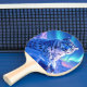 Add a supernatural touch to game time with this ping pong paddle, which features a majestic snow leopard with piercing blue eyes, its fur adorned with intricate patterns of frost and ice, as it perches atop a snow-capped mountain outcropping that's backlit by the setting sun and the aurora borealis. Reverse shows identical design. Personalise with a name!