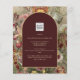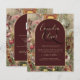 Beautiful vintage botanical art wedding item featuring burgundy, terracotta flowers and arch.