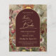 Beautiful vintage botanical art wedding item featuring burgundy, terracotta flowers and arch.