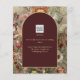 Beautiful vintage botanical art wedding item featuring burgundy, terracotta flowers and arch.