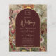 Beautiful vintage botanical art wedding item featuring burgundy, terracotta flowers and arch.