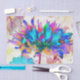 This Original Digital Oil Painting by My Rubio Garden features a Stunning Watercolor Rainbow Cactus Dahlia with red, aqua blue, magenta, lime green, purple, yellow and orange accents. The result is a colourful, elegant floral painting that you will love!