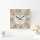 Stunning Monogram and Personalised Wedding Clock or Any Year Anniversary Clock. Type the Couple's Last Name MONOGRAM and Your Celebration Message, Couple's Names, Wedding or Anniversary Date or YOUR TEXT or DELETE. Soft neutral taupe and off white tones with pretty swirls and Love Birds Clock hovering over the Couple's Monogram.