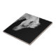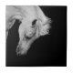 Stunning white horse on black looking down tile