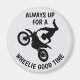 Add a touch of adventure to your fridge or magnetic surface with this fun magnet. Featuring a bike stunt rider mid-wheelie and the playful phrase “Always Up for a Wheelie Good Time,” this magnet is perfect for cycling enthusiasts, adrenaline junkies, or anyone who loves a good pun. It’s a great way to showcase your love for biking with a dash of humour.