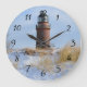 Sturdy Lighthouse on a Rocky Coast in Winter Large Clock