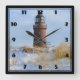 Sturdy Lighthouse on a Rocky Coast in Winter Square Wall Clock