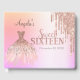 Elegant chic sweet 16, rose gold glitter dress, and drips on a rose gold background.