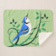 Stylised bird art of Blue Jay on decorative branches, background colour can be customised