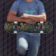 Stylised Cat Tribe Colours on Black Frieze Skateboard