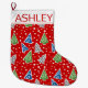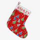 Stylised Christmas trees pattern red and name Large Christmas Stocking