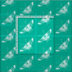 Fabric in a reproduction of a stylised Art Deco butterfly wallpaper pattern - white on a turquoise / blue-green / peacock background