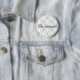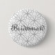 A stylised flower is the back drop for this bridesmaid button. A background colour may also be added.