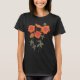 Graphic orange and green floral decorative poppies ladies t-shirt. Based on the ragged edged poppy. Uniquely designed by Sarah Trett.