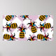 Stylised pineapple. Hat and rhombus Harlequin. Sea Poster