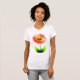 Printing of a stylised sunflower in vibrant green and orange colours.
