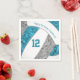 These volleyball themed birthday party paper napkins feature the realistic image of an abstractly oversized, stylised volleyball that has teal, grey & white panels upon which you can customise the text - by katz_d_zynes