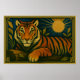 Stylised Tiger in Ornamental Sunburst Frame Poster