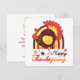 A colourful greeting card with elegant typography "Happy Thanksgiving" text, and a cute turkey with a colourful rainbow and some autumn leaves. The card includes a wonderful greeting message at the back which can be personalised.