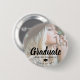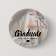 Stylish graduation button featuring a photo of the graduate, a graduate ceremony cap, students name, class year, and the word graduate in a script font.