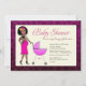 These stylish baby shower invitations feature an African American woman wearing a leopard print jacket and pushing a pink baby carriage with a subtle pink animal print as well! Ready to customise and purchase!