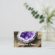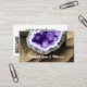 Stylish business card design is perfect for those in the gem & lapidary arts industry, events such as a gem & mineral show, or for those who sell healing crystals and such. Front features a purple amethyst geode. Add your details including a custom QR code for your website or social media account on back.
