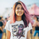 Kiwis wear all black as the t shirt is with Green lettering to match the environment and yellow for joy and purple thistle to match my hair.