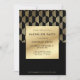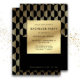 Make a bold statement with this modern black and gold bachelor party invitation, designed for the groom who values timeless sophistication. Featuring a sleek faux gold foil geometric pattern and clean, minimalist typography, this invite sets the tone for a classy night out or upscale cocktail celebration. The deep black background paired with metallic gold accents creates a luxe, Art Deco-inspired vibe—perfect for lounges, rooftop gatherings, or private events. Fully customisable with event date, location, and RSVP details, this stylish bachelor invitation is ideal for a refined send-off with just the right edge.