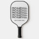 Styish Best Dinker Ever PICKLEBALL Paddle for men and women who love playing pickleball. The design shows the word PICKLEBALL repeated in a sports typography. Underneath the wording says BEST DINKER EVER, which is CUSTOMIZABLE so you can replace with your name, team name or tournament, etc. Designed for pickleball moms, dads and friends who like playing regional, national and international pickleball tournaments together. Buy one for each person on your team or in your family. Or why not buy a collection in different colours? You can change the background colour by clicking Edit This Design. Choose from a selection of pickleball designs by Berean Designs. Also in black.