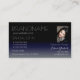Stylish Black and Blue Chic Mirror Font with Photo Business Card