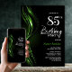 Invite your friends and loved ones to your 85th birthday with this stylish black and green birthday party invitation. The customisable text area in this invitation template allows you to effortlessly include all the necessary details for your special birthday celebration, including the date, time, venue, and RSVP information. A variety of paper types and corner styles are available for your unique invitations, along with the option to download if you prefer a digital format.