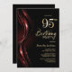 Invite your friends and loved ones to your 95th birthday with this stylish black and red birthday party invitation. The customisable text area in this invitation template allows you to effortlessly include all the necessary details for your special birthday celebration, including the date, time, venue, and RSVP information. A variety of paper types and corner styles are available for your unique invitations, along with the option to download if you prefer a digital format.