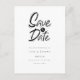 This minimalist black and white save the date card features a stylish etched save the date above your details set in elegant text.