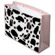 This cute gift bag has a fun black and white cow print on the front and back with contrast pale pink sides. Ideal for wedding, birthday and party gift wrapping.