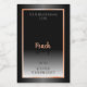 Make a lasting impression with this elegant and modern product label design featuring a black and white colour gradient with a luminous shimmery peach decor frame. Matching an outstanding font with shadow effect.