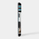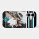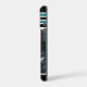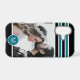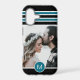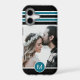 Striped monogram photo case with blue and black stripes. The color of the stripes and monogrammed circle can be changed.