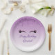Paper plates with a trendy stylish design. The background is a purple gradient colour with an image of faux sparkling glitter dripping down from the top. A pair of girly cute eyelashes underneath the glitter image. Personalise with your own event text.