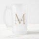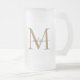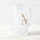Stylish Black Gold Monogram Elegant Script Name Frosted Glass Beer Mug