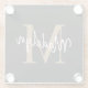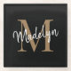 Stylish Black Gold Monogram Feminine Script Name Glass Coaster. Easily personalise this modern elegant glass coaster with your custom monogram and name.