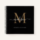 Stylish Black Gold Monogram Initial Script Name Notebook