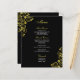 An elegant way to showcase your wedding menu to all your guests. A list showing the first course, second course and dessert options. The reverse has a personal message from you along with your names and wedding date. A dramatic black menu with faux gold foil swirls and flowers.