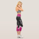 Stylish black magenta floral white stripes & name capri leggings