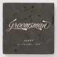 Stylish Black Retro Typography Groomsmen Stone Coaster