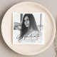 Celebrate your graduate in style with these modern personalized photo graduation napkins, featuring the graduate’s favorite photo paired with a sleek black handwritten script “Graduate” overlay for a stylish, contemporary look. The clean design allows you to customize the napkins with the graduate’s name and graduation year, creating a meaningful detail that feels both polished and personal. Perfect for high school and college graduation parties, senior celebrations, and grad banquets, these custom graduation party napkins add a photo forward accent to dessert tables, drink stations, and reception décor while helping you create a coordinated and memorable event.