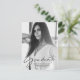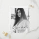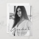 Invite guests to celebrate the grad with modern photo graduation party invitation postcards. The elegant graduation party postcard invitations feature the graduate's vertical photo with "Graduate" in a stylish black script overlay. Personalise the front of the photo graduation party invites by adding the graduate's name, school name, and graduation year. The back of the postcard features your return address and graduation party details. The graduation party invites are perfect for both high school and college graduates.